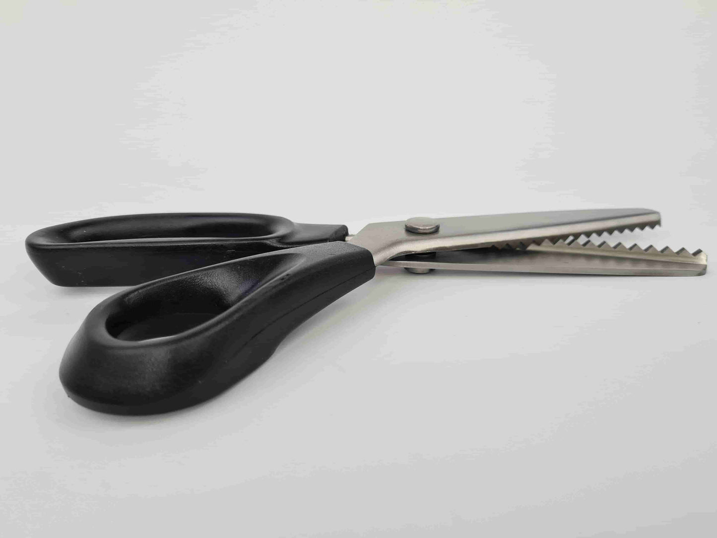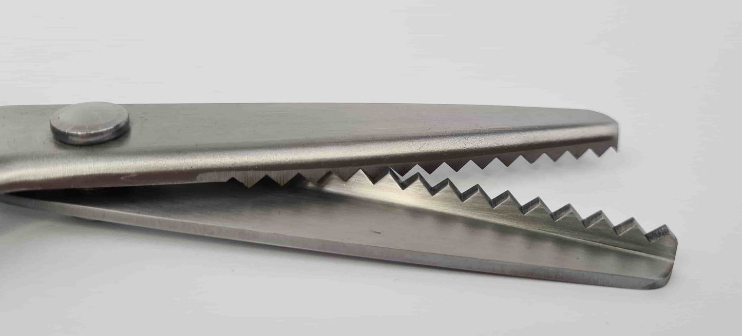 Die Zackenschere wird dazu verwendet um das Netz (Lacefront, Filmansatz,...) der Perücke einzuschneiden. Der Vorteil des Zackenmusters liegt darin, dass zum einen der Übergang von deiner Haut zum Netz etwas geblendet wird und zum anderen ein Ausfransen des geschnittenen Netzes etwas verhindert werden soll.